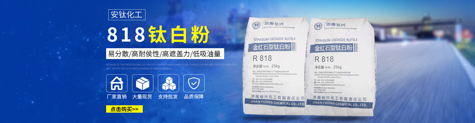常州安鈦化工有限公司經(jīng)銷(xiāo)批發(fā)的鈦白粉、沉淀硫酸鋇、立德粉、滑石粉、高嶺土、炭黑、云母粉、彩色顏料、氫氧化鈣、硅微粉、氧化鐵紅、氧化鐵黑、金紅石型鈦白粉、銳鈦型鈦白粉、進(jìn)口鈦白粉暢銷(xiāo)消費(fèi)者市場(chǎng),在消費(fèi)者當(dāng)中享有較高的地位,公司與多家零售商和代理商建立了長(zhǎng)期穩(wěn)定的合作關(guān)系。常州安鈦化工有限公司經(jīng)銷(xiāo)的鈦白粉、沉淀硫酸鋇、立德粉、滑石粉、高嶺土、炭黑、云母粉、彩色顏料、氫氧化鈣、硅微粉、氧化鐵紅、氧化鐵黑、金紅石型鈦白粉、銳鈦型鈦白粉、進(jìn)口鈦白粉品種齊全、價(jià)格合理。常州安鈦化工有限公司實(shí)力雄厚,重信用、守合同、保證產(chǎn)品質(zhì)量,以多品種經(jīng)營(yíng)特色和薄利多銷(xiāo)的原則,贏得了廣大客戶的信任。